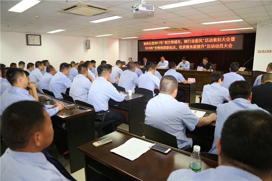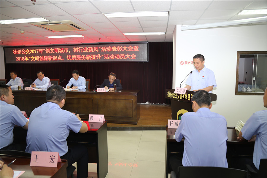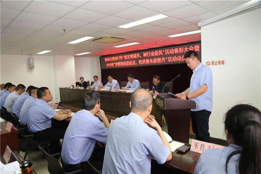 5月10日上午,有限公司召開“2017‘創(chuàng)文明城市、樹行業(yè)新風(fēng)’總結(jié)表彰暨2018‘文明創(chuàng)建新起點(diǎn),優(yōu)質(zhì)服務(wù)新提升’活動動員大會”,主要任務(wù)是對全公司文明城市創(chuàng)建常態(tài)長效工作進(jìn)行部署,動員全體干部員工認(rèn)清形勢、再鼓干勁,開啟文明創(chuàng)建新征程,再創(chuàng)優(yōu)質(zhì)服務(wù)新提升。公司董事長、總經(jīng)理杜紅軍,工會主席竇同銀,調(diào)研員張同剛、祖伯鴻,相關(guān)部室負(fù)責(zé)人,營運(yùn)公司經(jīng)理、書記、服務(wù)主管,車隊長、先進(jìn)個人代表等87人參加了會議。
