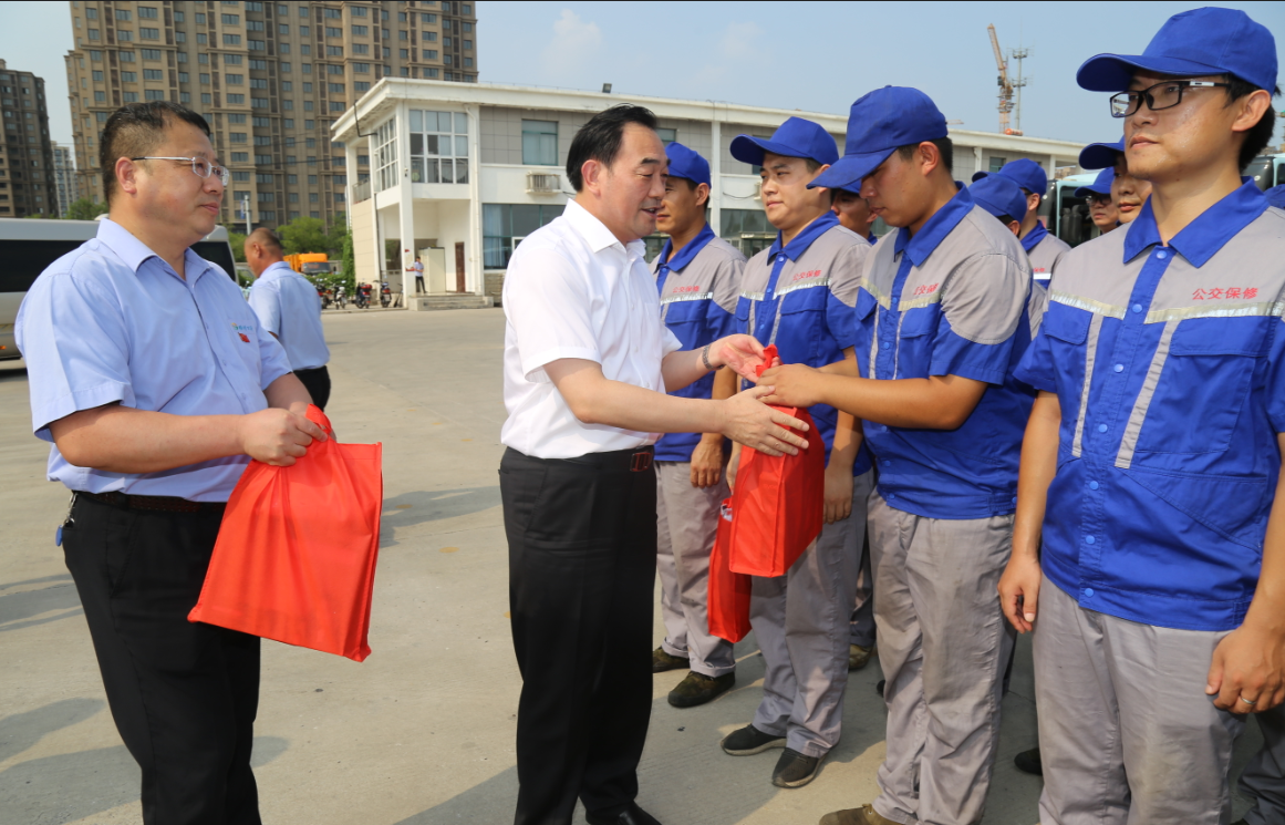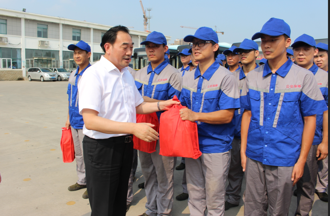 在烈日下的公交郭莊停車場(chǎng),周鐵根書記看到堅(jiān)守崗位的公交員工們汗流浹背,親切地上前與公交駕駛員、修理人員等一線員工一一握手。“大家辛苦了!感謝你們!”他對(duì)廣大公交員工為保障全市人民高溫天氣正常出行所付出的辛勤勞動(dòng)表示充分肯定,又將洗發(fā)水、毛巾、肥皂等降暑物品,以及《安全生產(chǎn)知識(shí)職工普及讀本》等書一一送到公交員工手中,叮囑有關(guān)負(fù)責(zé)人,要多愛(ài)護(hù)、關(guān)心一線職工,切實(shí)做好防暑降溫措施,為公交員工創(chuàng)造好的工作條件,切實(shí)維護(hù)廣大職工的安康權(quán)益,確保高溫天里職工的身體健康和安全生產(chǎn),讓職工安全度夏、清涼度夏,真正感受到黨和政府的關(guān)懷、工會(huì)組織的關(guān)心和社會(huì)各界的關(guān)愛(ài)。他還關(guān)心地叮囑公交員工們要?jiǎng)谝萁Y(jié)合,做好高溫防護(hù),保重身體,杜絕疲勞駕駛,確保安全行車,并希望大家更好地堅(jiān)守崗位、服務(wù)群眾,為保障市民安全有序的出行環(huán)境,打造我市優(yōu)化營(yíng)商環(huán)境、營(yíng)造文明城市良好氛圍做出更大的貢獻(xiàn)。